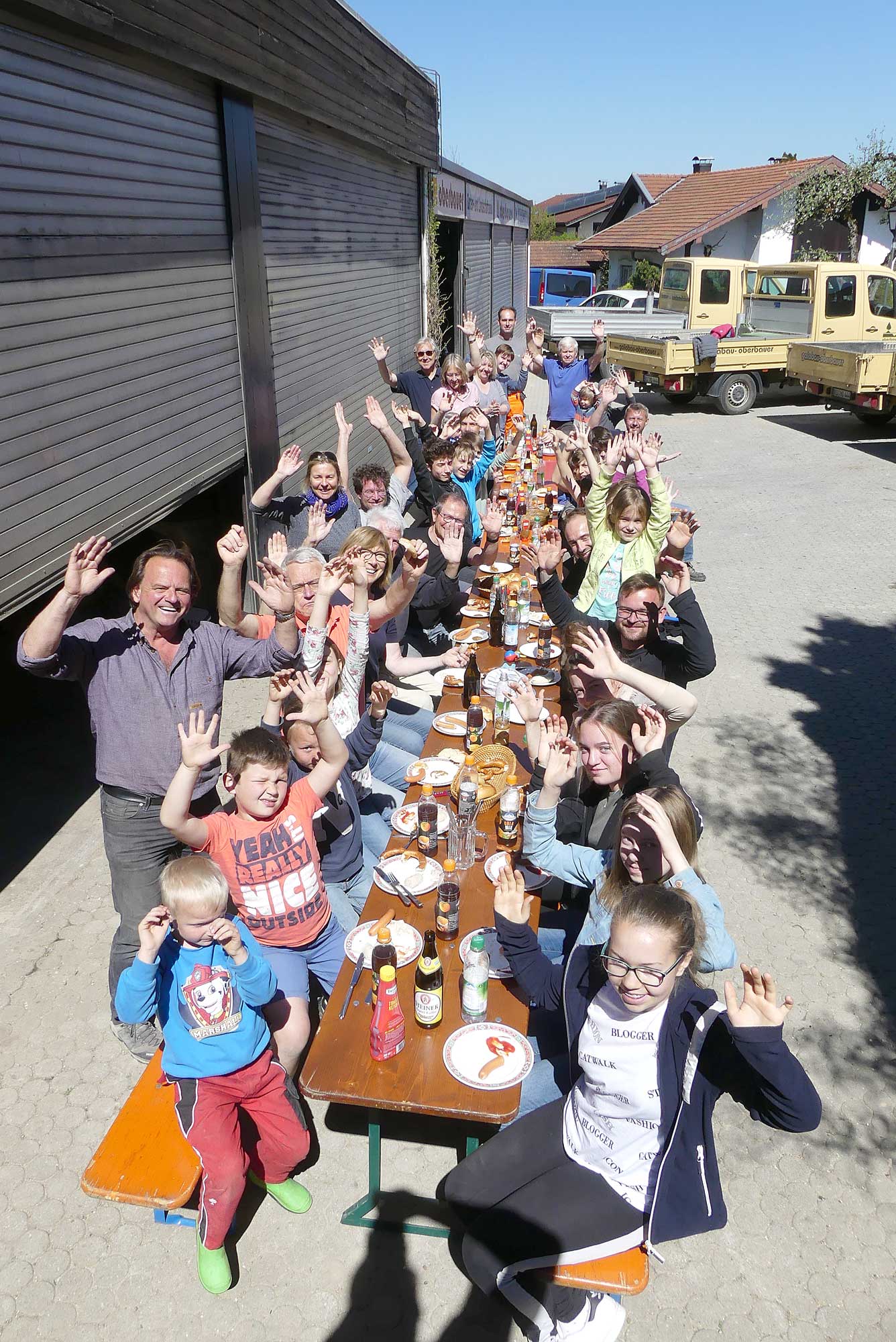 Zwei Termine haben wir, an denen alljährlich Aktionen stattfinden. Das ist einmal der Karsamstag, an dem Ramadama im Gemeindegebiet durchgeführt wird und zum Anderen einen Samstag im Juli, an dem das Springkrautrupfen im Moos statt findet. Wir sind sehr stolz darauf, dass alle Altersgruppen bei unseren Aktionen mitmachen. Im Idealfall sind das Großeltern, Eltern und Kinder. Im Anschluss an unsere Aktionen gibt es immer die gemeinsame Brotzeit, eine gute Gelegenheit des geselligen Austauschs.